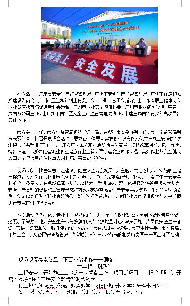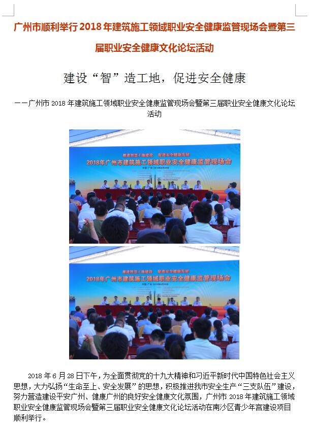 广州市顺利举行2018年建筑施工领域职业安全健康监管现场会暨第三届职业安全健康文化论坛活动