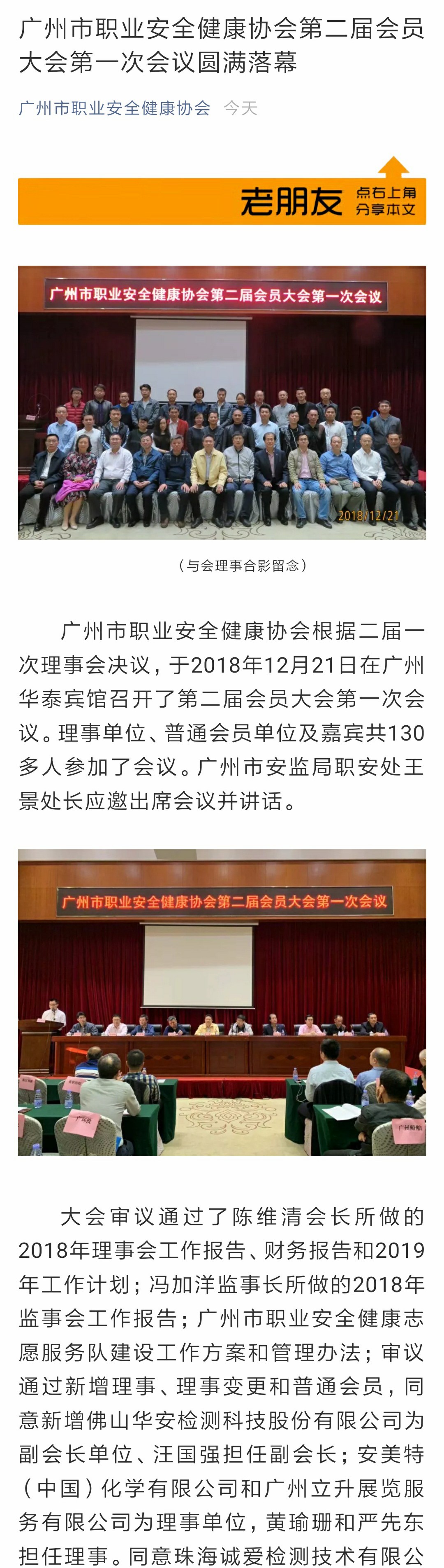 广州市职业安全健康协会第二届会员大会第一次会议圆满落幕