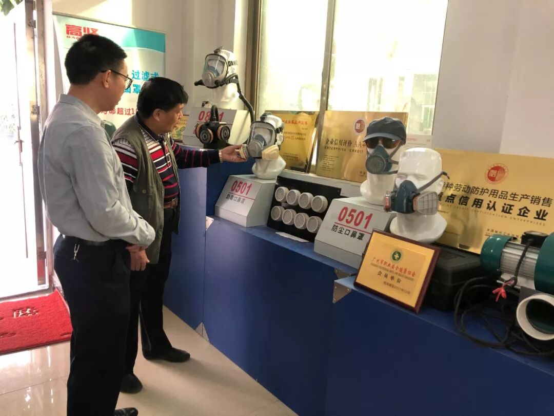 广州市高坚劳保用品有限公司董事长杨云生详细介绍了全系列产品,0801A动力送风过滤式全面罩/半面罩、二氧化碳呼吸过滤装备、自吸过滤式半面/全面罩、95防颗粒物过滤元件、防烟防水综合过滤件、0801和0701大视窗防尘防毒全面罩、1201和0501防尘防毒口鼻罩、0302双罐防尘防毒口鼻罩和防冲击眼镜等产品,了解广州市高坚劳保用品有限公司的发展历程、企业文化、产品工艺、产品种类和厂房搬迁等情况,其次参观了广州市高坚劳保用品有限公司的产品展厅、生产车间、仓库和实验室。座谈会上杨云生董事长也介绍了公司目前运营现状及未来规划,杨董对协会的走访工作表示高度认可,同时也提出了一些宝贵的意见和建议,协会将再接再厉,努力为会员做好各项服务。