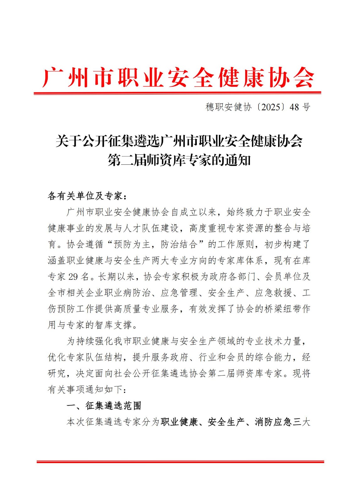 关于公开征集遴选广州市职业安全健康协会第二届师资库专家的通知-20251104.pdf