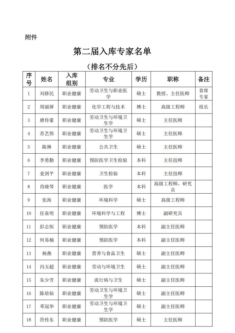 广州市职业安全健康协会第二届入库专家名单的公示